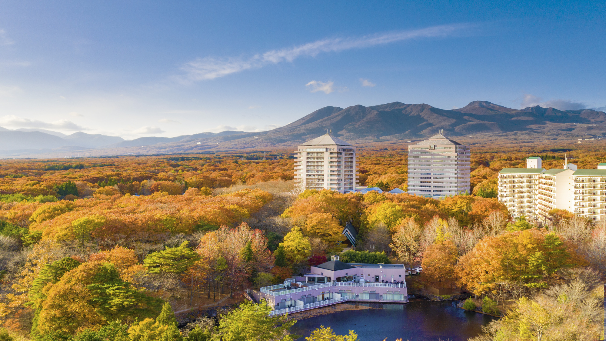 那須温泉を引いた大浴場と露天風呂、季節営業のウォータープール、クラフト体験教室など高原リゾートとしての魅力が多い。各館から雄大な那須連山が見え、四季の景色が楽しめる。